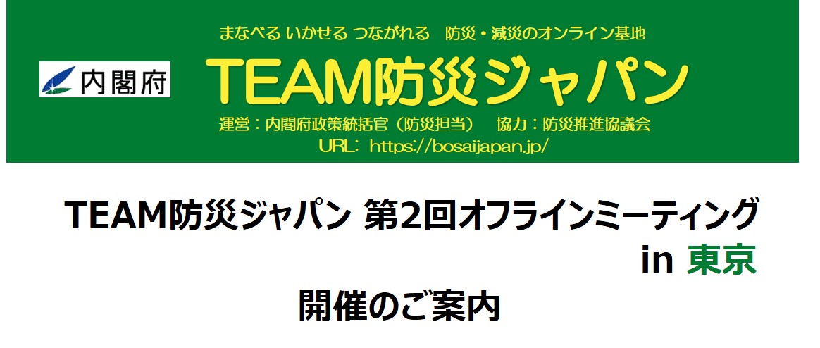 「TEAM防災ジャパン第2回オフラインミーティング<昼の部>in東京」(2月24日(土))開催のお知らせ