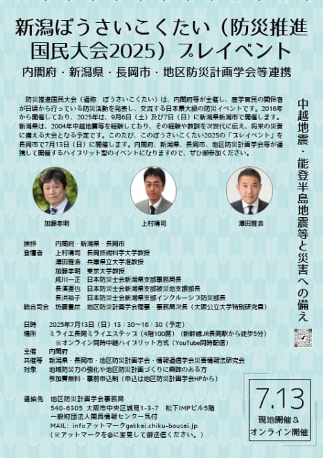 新潟ぼうさいこくたいプレイベントHP  https://gakkai.chiku-bousai.jp/ev250713.html