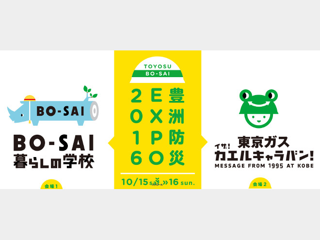 10/15(土)、16(日)に豊洲地区で行なわれる防災イベント。BO-SAI 暮らしの学校」では、楽しみながら防災を学べる体験型プログラムを展開。「東京ガス イザ!カエルキャラバン!」では、「そのまえ」、「そのとき」、「そのあと」という3つのテーマを設定し、地震発生前から避難生活まで状況ごとに役立つ知恵や技を紹介。いずれも、親子がいっしょに楽しみながら、防災知識が自然と身に付くプログラムとなっている。
