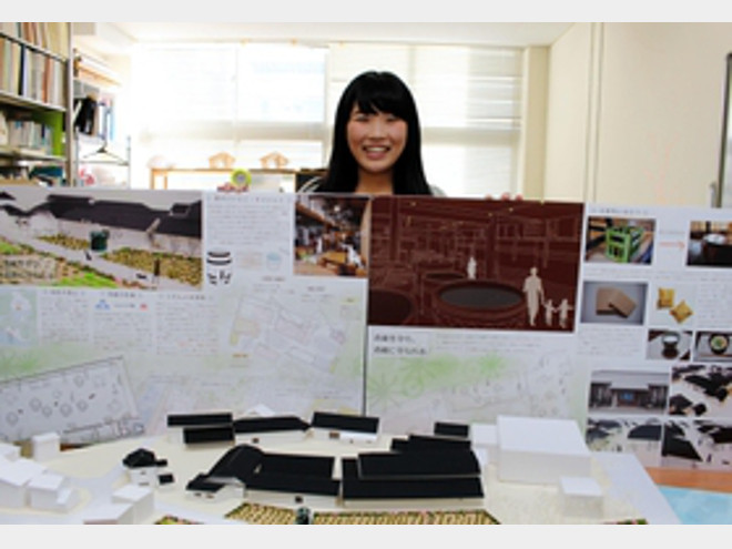 防災のアイデアを競う「全国高等専門学校デザインコンペティション」の創造デザイン部門の最優秀賞作品は「酒蔵を守り、酒蔵に守られる」。地元の酒蔵を避難所として活用し、配慮が必要な人が安心できる空間を生み出すとともに、歴史遺産を次代につなぐ発想が評価された。受賞した明石高専建築学科5年の河本有希さんは、所属するゼミで阪神・淡路大震災の体験を聞いたり、東日本大震災被災地の様子を見聞きしたりする中で「障害者や女性、子どもなどへの配慮が不十分な避難所が多い」と感じ、市内西部の酒蔵に着目した。