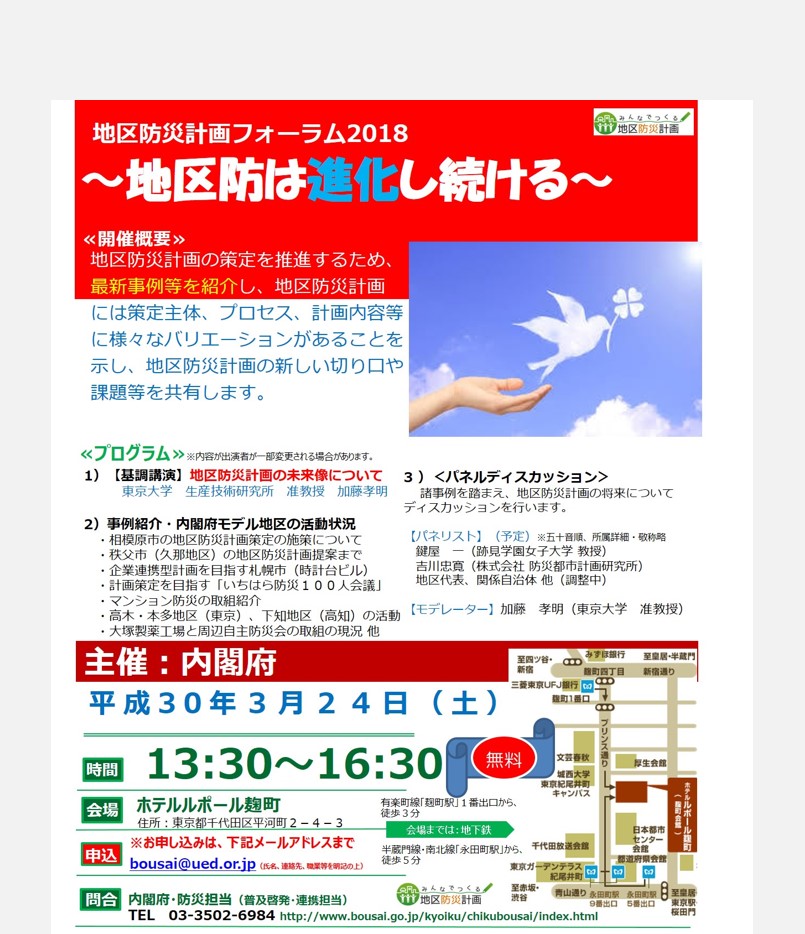「地区防災計画フォーラム2018~地区防は進化し続ける~」(平成30年3月24日(土)東京開催)のお知らせ