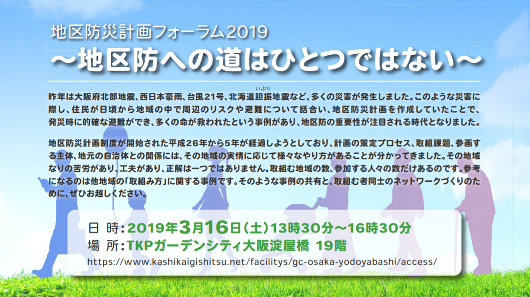 「地区防災計画フォーラム2019」を大阪にて開催します