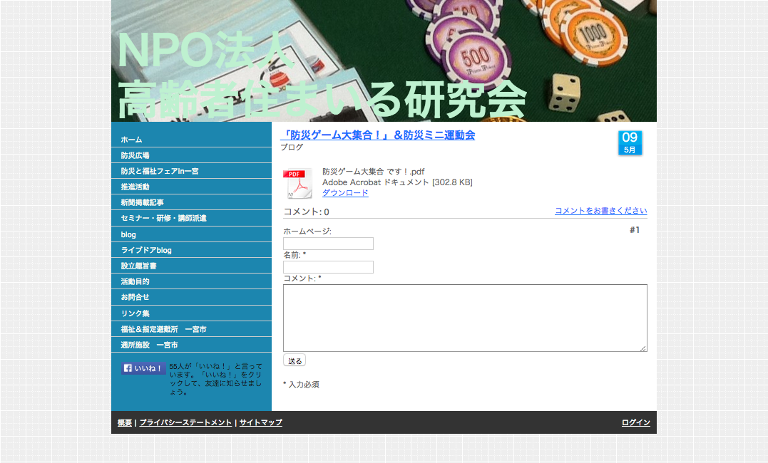 「防災ゲーム大集合!」:NPO法人高齢者住まいる研究会