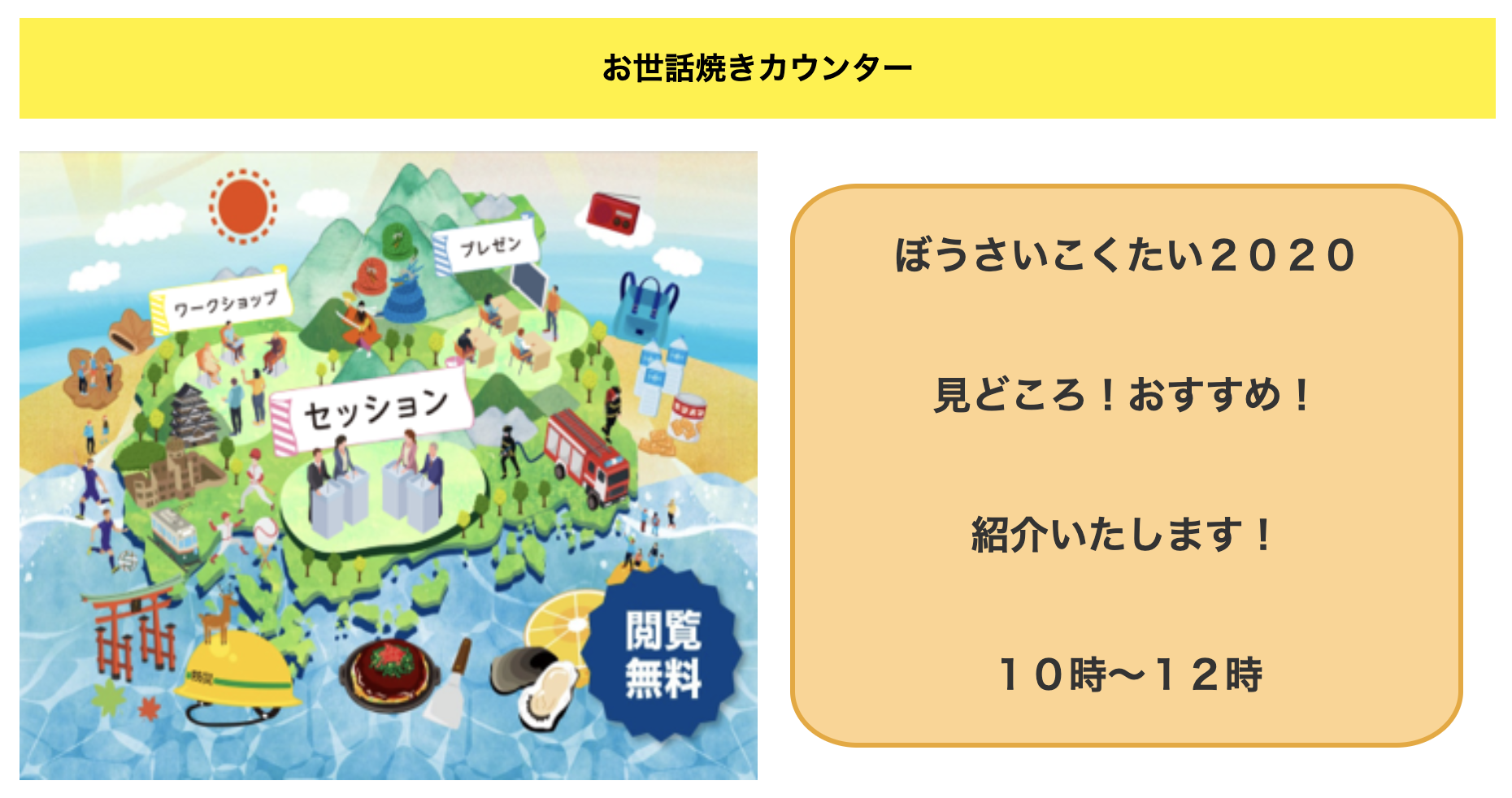 ぼうさいこくたい2020出展特別企画「世話焼きカウンター」 当日午前中限定でオープン