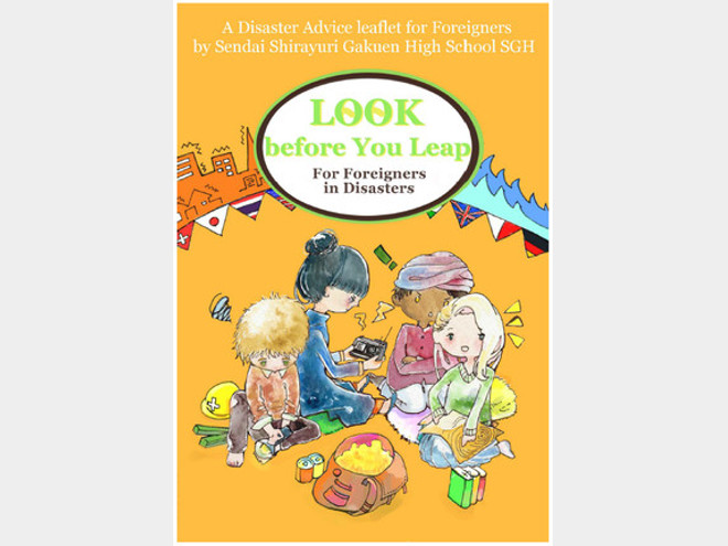 仙台白百合学園高校の4人が作製した 外国人向け防災・減災パンフレット「Look before you leap(転ばぬ先のつえ)」