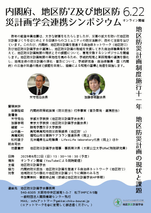 大会概要⇒ https://gakkai.chiku-bousai.jp/ev250622.html