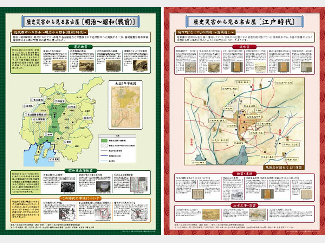 名古屋市が過去の自然災害を伝える防災・減災ポスターを作成。「歴史災害から見る名古屋」をテーマに、「江戸時代編」「明治~戦前編」「戦後~平成編」「土地の成り立ち編」の四枚一組で、市内の地図に被害地点などを落とした、いわば「歴史ハザードマップ」。区役所や市内の小中学校、高校に掲示する。