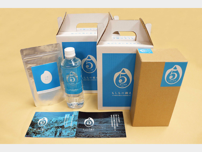 岩手県大船渡市の知的障害者の就労支援に取り組む一般社団法人「かたつむり」が企画と加工を手掛け、北上市の障害者就労支援施設「北上アビリティーセンター」がパッケージデザインを担当した。陸前高田市のブランド米「たかたのゆめ」を乾燥処理したパックや野田村産の塩、5年間保存可能な水がセットになっていて、米のパックは水と反応する発熱材で温める。東日本大震災時、避難所では支援物資の配給に行列ができ、温かい食事を提供できないケースもあったため、非常食一式をコンパクトにまとめた。