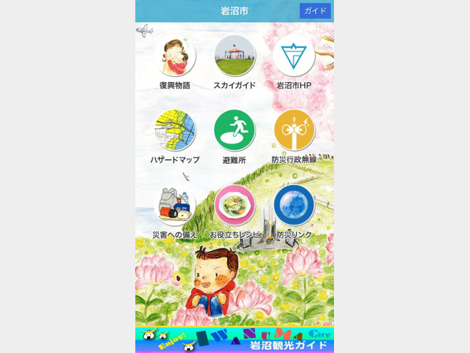 宮城県岩沼市が、東日本大震災の伝承と市民の防災意識向上のため開発した「震災伝承・防災アプリ」。震災前後の状況を写真などで比較できる「いわぬま復興物語」では、津波の被害を受けた沿岸部などの市内約30カ所を地図に落とし込んであり、タップすると写真や音声、映像で状況を確認できる。災害時にも簡単に作ることができる料理36種類をまとめた「お役立ちレシピ」や、市内の指定避難所などを地図上に表示したりできる機能もある。また、アプリを起動していなくても、市が発表する避難勧告や避難指示を通知で受け取ることができる。