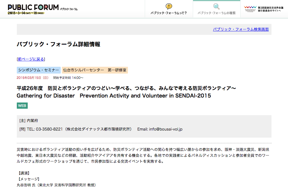 平成26年度 防災とボランティアのつどい~学べる、つながる、みんなで考える防災ボランティア~