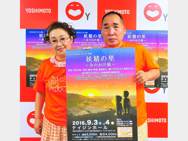 夫婦漫才の宮川大助・花子が、復興と防災をテーマにした芝居公演「妖精の里~命の架け橋~」(9月3~4日、大阪・テイジンホール)を行なう。二人は南海トラフ地震が起こった際に危険度が高いとされる地域に足を運び、現地での防災の取り組みを取材したり、自主的に「防災シンポジウム」を開くといった活動を行っている。その一環として、楽しみながら防災を考えられるよう舞台にも「防災」を取り入れることにした。公演は第一部で南海トラフ地震危険地域に暮らすある家庭を中心にした「防災」の物語、第二部で「第2ステージ」へと向かうの「復興」の物語を描く予定。