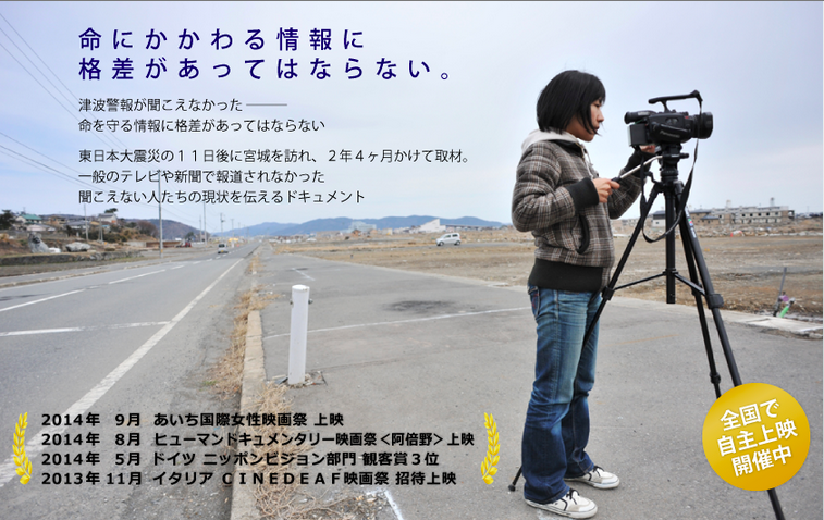 聞こえる人と聞こえない人の日常における交流がもっとあれば、助かったかもしれない。耳が聞こえない難聴の監督が、東日本大震災の被災地・宮城県で2年4ヶ月追いかけた記録を通して、ろう・難聴者の存在や現状、災害に備えて聞こえる人、聞こえない人ができることは何かを考えさせられるドキュメンタリー映画。