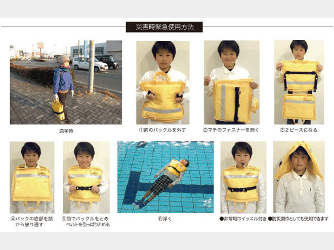 津波・水難から子供守れ 救命胴衣になる「通学バッグ」製品化