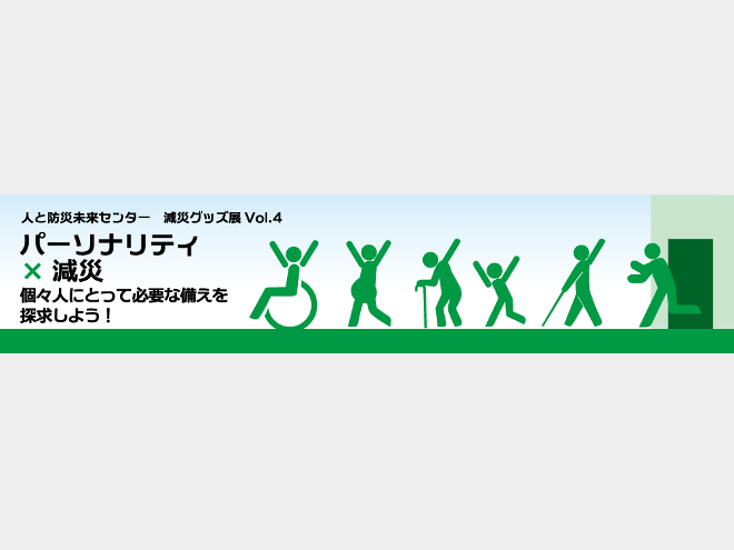 兵庫県神戸市の「人と防災未来センター」で2015年12月15日(火)~2016年2月28日(日)まで開催される減災グッズ展の第4弾。災害時要援護者にとって、いざという時のために備えることが望まれる防災・減災用品とはどのようなものかについて、民間企業からの製品公募によって収集した46社71点の製品を展示紹介。また、災害時要援護者となりうる当事者や支援者からの「重要だと考える減災グッズ」や「備えの方法」を紹介する展示を行い、個々人にとって必要な備えを考える機会とする。