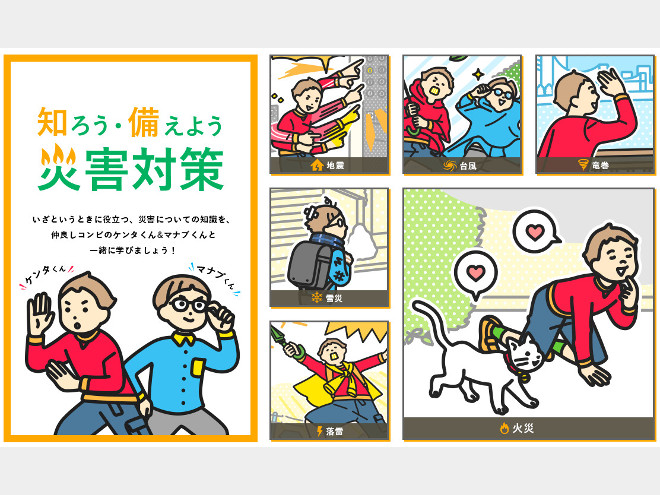 三井住友海上火災保険株式会社が4月から、オフィシャルサイト(http://www.ms-ins.com/special)で提供している防災・減災に関する新コンテンツ。小学生2人のキャラクターを用いて、地震・台風・雪災・落雷など計8個の自然災害等について、意外と知らない豆知識や、知っておくと役立つ事前の備え、災害時の行動の情報をまとめている。