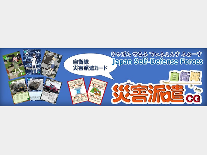 子どもたちの防災への関心を高めようと、自衛隊岡山地方協力本部と災害支援財団、日本安全保障・危機管理学会が企画して、自衛隊の災害派遣をテーマにしたカードゲームを作った。噴火、豪雨、土砂災害、地震といった「災害カード」10枚と、装備品や隊員が描かれた「自衛隊カード」30枚の計40枚が1セット。小学生以上向けで1対1で対戦する。任務遂行に必要なポイント数が記された災害カードに対し、プレーヤーは交互に自衛隊カードを出しながらゲームを進め、先に必要数に達した側が勝利となる。