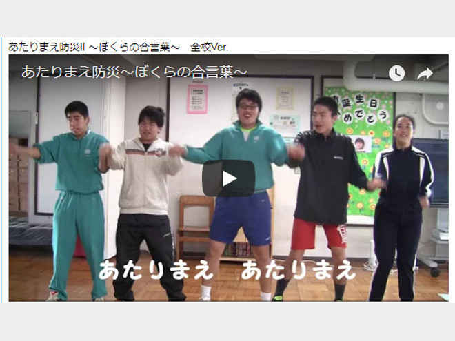 千葉県立東金特別支援学校の児童生徒が、「防災を当たり前に」をキーワードに、オリジナル曲をつくってYoutubeで発信したり、防災関連イベントを企画するなど、命を守るための活動に取り組んでいることが評価され、消防庁主催の「第二十二回防災まちづくり大賞」で最優秀の総務大臣賞を受賞した。2016年に児童生徒の有志で「あたりまえ防災隊」を発足し、「あたりまえ防災」をオリジナルの歌と踊りに作り替え「あたりまえ防災Ⅱ~ぼくらの合言葉~」を完成させた。東金市の補助金でCD300枚をつくり、市の防災イベントなどで無料配布。2018年2月にYoutubeで動画配信を始めた。あたりまえ防災隊は、同校で毎年開く地域の人と防災を学ぶ催し「防災ウオークラリー」の企画も担っている。