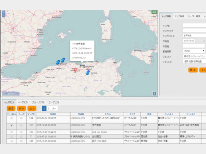 ユーザーが自分好みのオンラインマップを作成できるスマートフォンアプリ。イベント情報やグルメ情報などを書き込んで作成したマップを公開し、他のユーザーと情報共有することができる。また震災時に物資の過不足情報を随時更新し、一目で把握できる地図を作成して情報交換を行うといった活用法も想定されている。