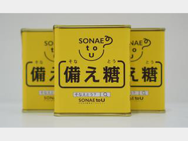 兵庫県神戸市が、大雨による土砂災害や地震などへの防災意識を市民に高めてもらおうと製作した防災啓発グッズ。災害時にも糖分の補給ができる飴の入った缶で、裏面には「災害への備え」のポイントを記載している。11月13日に実施される津波避難訓練や防災イベントなどで配布される予定。神戸市では、平時から気軽に楽しく防災について学ぶためのポータルサイト「SONAE to U(そなえとう)?」を昨年12月より公開している。