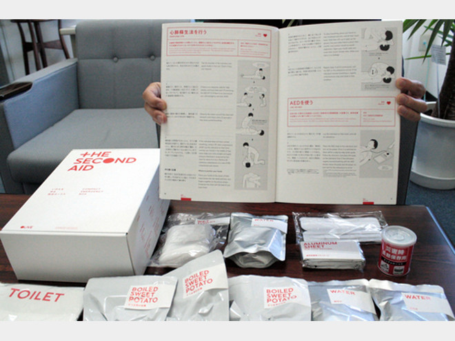 機械部品・設備販売の高進商事が、コンパクトさが売りの防災セット「ザ・セカンド・エイド」を英語対応に改良し、発売。セット内容は、A4サイズの箱に非常食、飲料水、アルミ製ブランケットなど必需品13点が入る。非常事態の対処法をまとめたマニュアル本とトイレキットの説明書に日本語と英語を併記した。