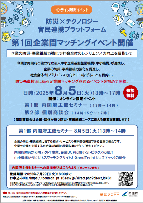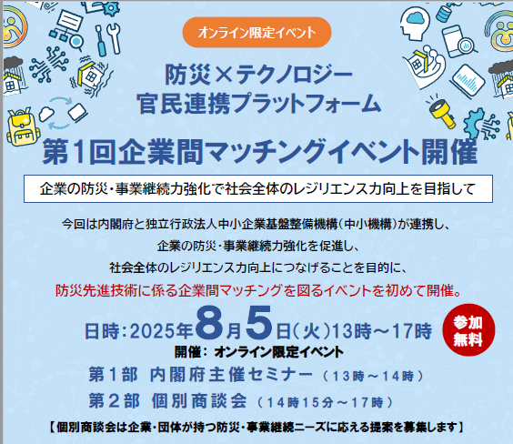 名古屋大学 福和教授・立教大学 野田教授による講演や、BCP策定相談会を予定。